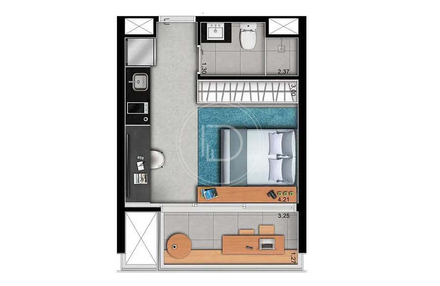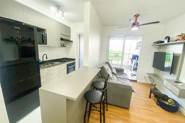 Com 26m² bem distribuídos, o imóvel conta com móveis planejados, cozinha equipada e 1 vaga de garagem.