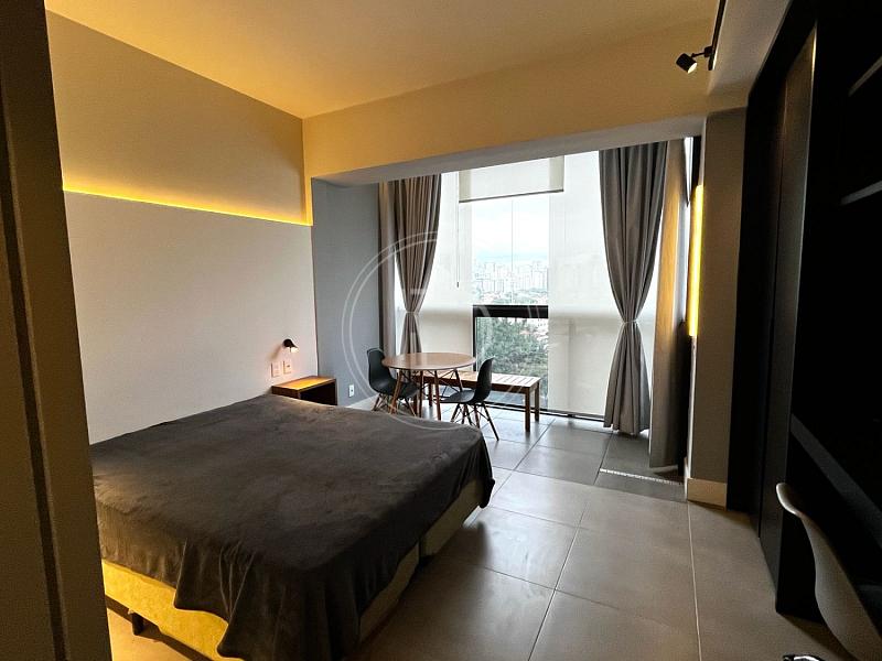 Charmoso studio mobiliado, moderno e funcional, com vista livre em andar alto, ideal para quem busca praticidade e conforto no coração da Vila Olímpia.
