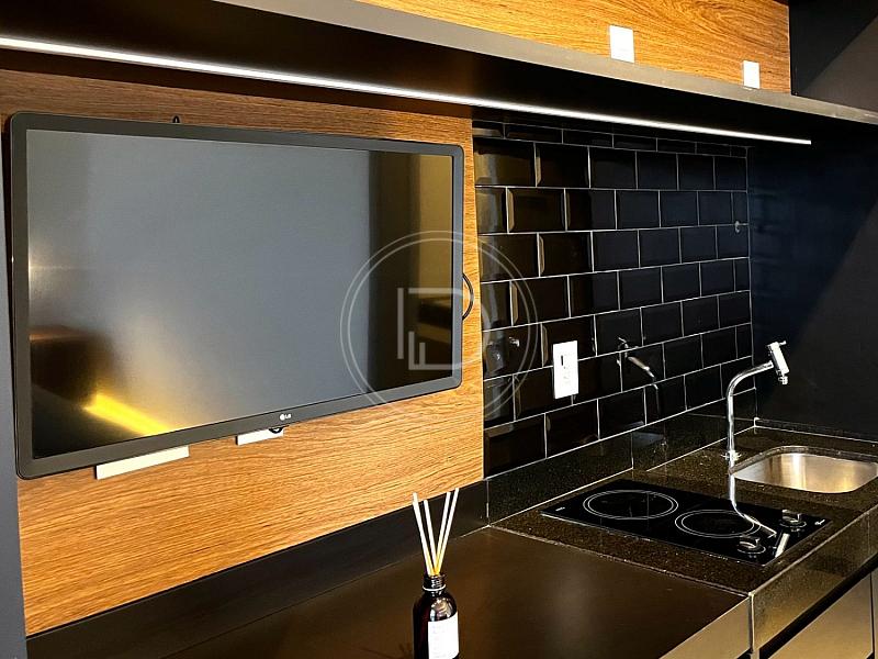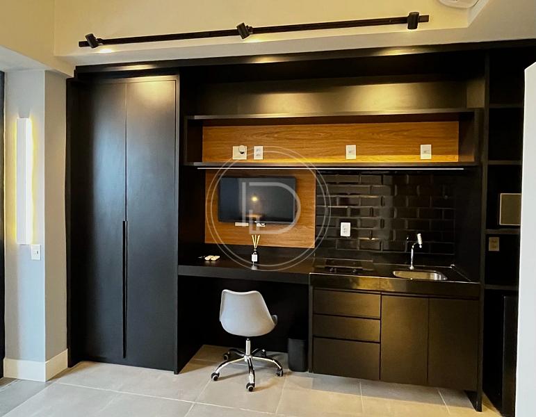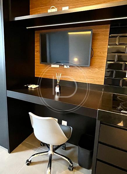 Studio mobiliado na Vila Olímpia – 26m², vista livre, andar alto e 1 vaga